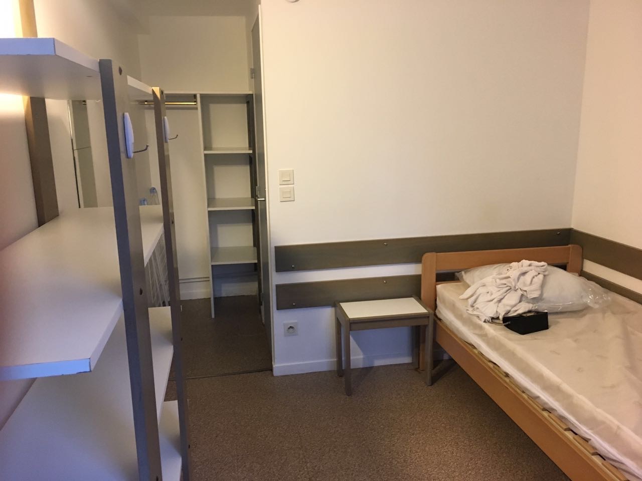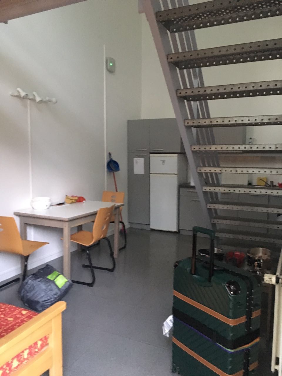 宿舍有毛毯。枕头,提供了双人的盘子、刀叉、杯子、勺子、开瓶器、刀具、平底锅、深锅,居然还有清洁的扫帚我也是震惊了。