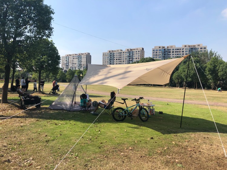 10.4 号非常不赶集的上午十点多出发,堵了两个多小时后来到 长兴岛郊野公园参加露营活动。