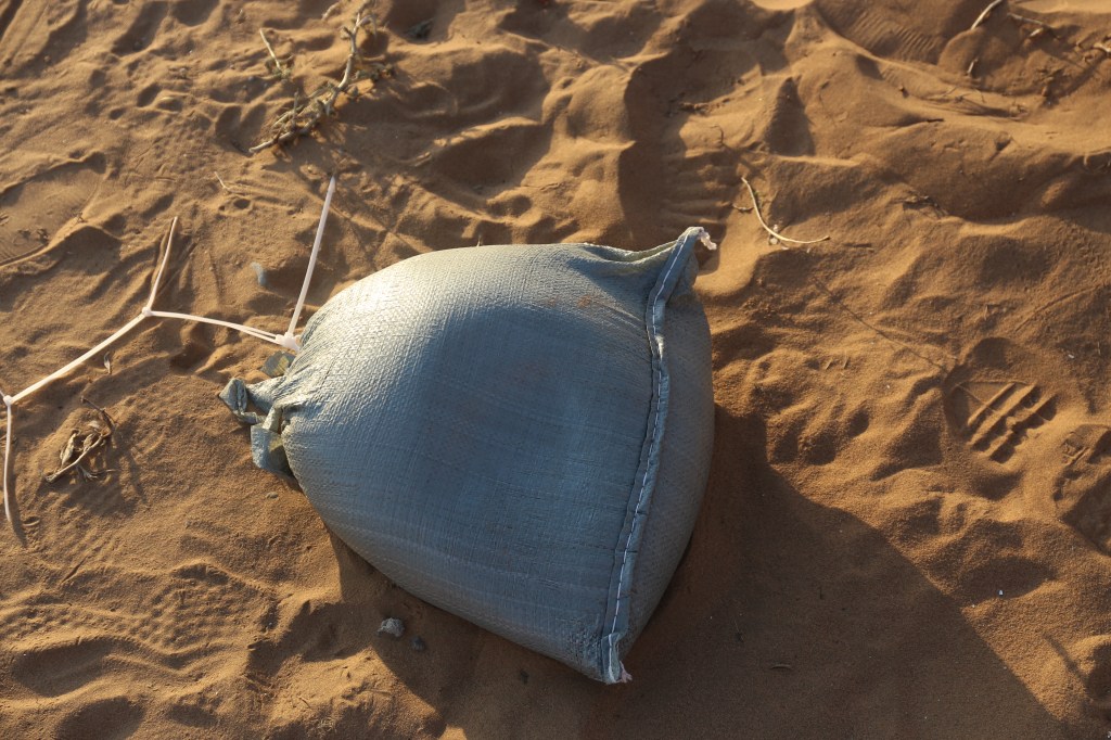 其实,在沙漠里搭建帐篷,最好的方式是带几个蛇皮袋子装满沙子,然后露营绳子捆绑在袋子上即可。